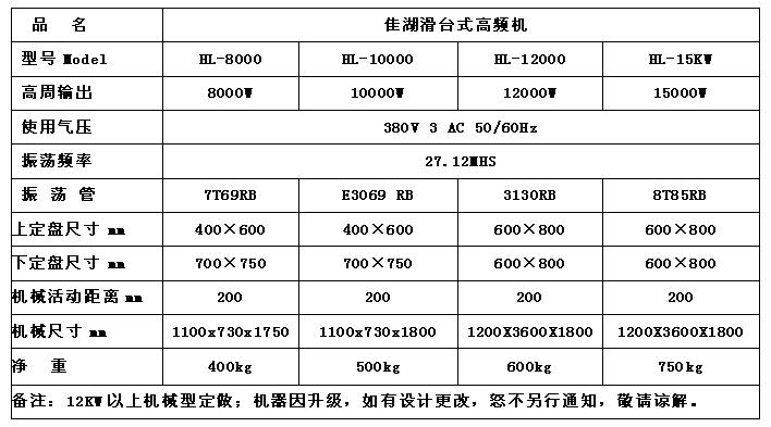 佳湖高周波(滑臺式高周波)高周波塑膠熔接機