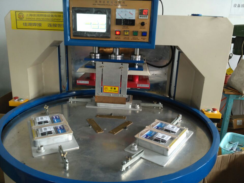 多工位自動轉盤機:主要用于PETG .TPU.PU和各種聚氯乙烯含30%(PVC)為主的塑膠焊接。雙吸塑封邊包裝,吸塑與紙卡熱合、折盒.五金工具、LED節能燈,牙刷、文具.化妝品.三明治吸塑包裝等。