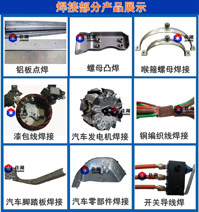上海佳湖焊接設備有限公司按客戶需求可定制各種非標自動化點焊機、碰焊機、中頻點焊機、中頻滾縫焊機、電容儲能點焊機、汽車零部件焊機、四柱龍門式排焊機、龍門式鈑金自動點焊機、非標自動化焊接設備、大功率中頻逆變直流焊接設備。