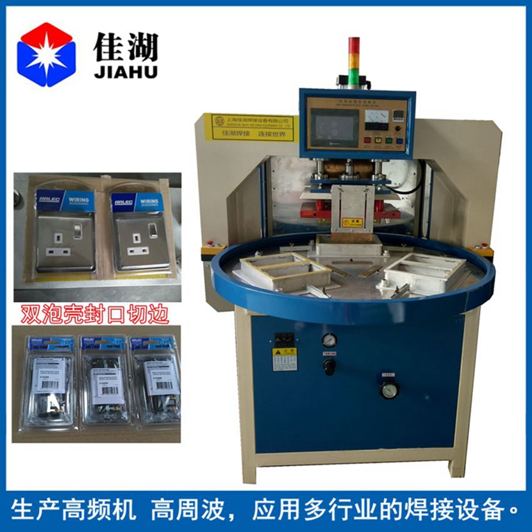 1、用于吸塑包裝封口的高周波機,使用時可根據吸塑包裝的產品尺寸大小,來決定一次同時包裝一個或多個產品。高周波工作臺自動旋轉,3-6工位可選,自動轉盤高周波加強型機架,PLC控制、人機界面觸摸屏控制,方便設置參數。