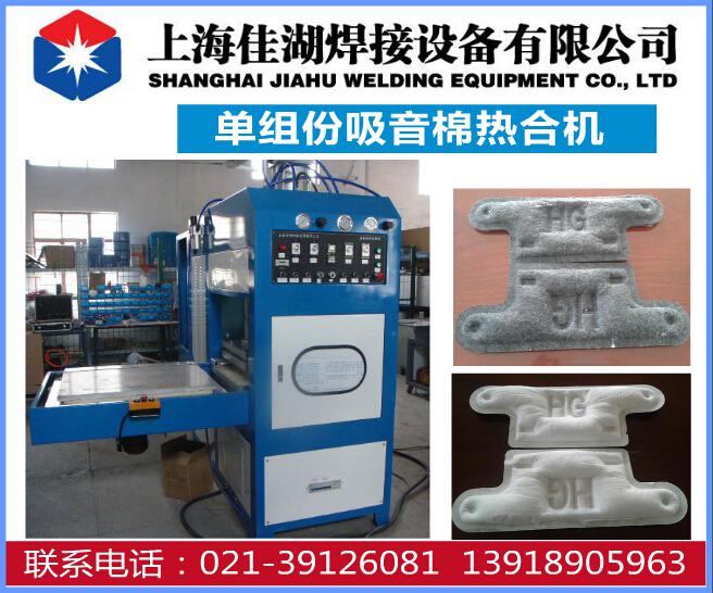 該設(shè)備為吸音棉定做。是由左,右自動(dòng)滑臺(tái)進(jìn)料,自動(dòng)熔接,切斷,定型,自動(dòng)退出,工作時(shí)通過滑臺(tái)輸送材料,進(jìn)入工模位置,機(jī)頭氣缸自動(dòng)下降,通過延時(shí)預(yù)熱,熔接、定型(切斷)、機(jī)頭上升、滑臺(tái)自動(dòng)退出,手工取出成品。