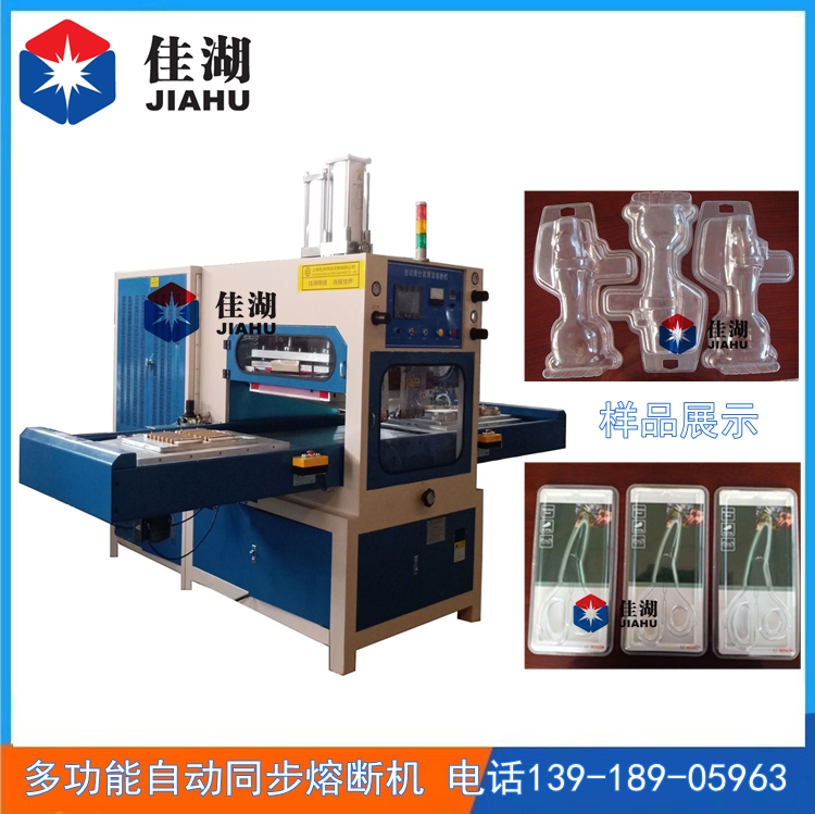 高周波自動同步熔接機,高周波熔斷機的工作原理是利用高周波先熔接再通過機器配有的壓力裝置同時切斷。因為是同時完成,所以稱為高周波同步熔斷機。也稱為高周波熔斷機.高周波同步裁斷機。主要適用于PET、PETG、GAG環保材質的雙面吸塑泡殼的封口包裝、吸塑紙卡包裝、牙刷封口包裝,以及EVA等布類皮革、真皮、PU、表帶、吊帶、熱水袋、皮具、錢包,護照包,腰帶,皮具禮品、皮具套、箱包、手機皮套、平板電腦皮套、公文包、旅行包、手提包、電腦包、保暖袋等需要熔接又要同步熔斷的產品。