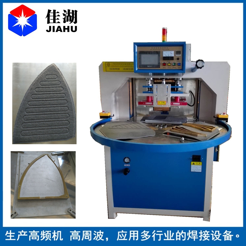 2.自動轉盤式高頻機又簡稱高周波:主要用于含30%以上各種聚氯乙烯(PVC)為主的塑膠熔接、焊接等,并將不同形狀泡罩或泡殼塑膠材質自動焊接同時自動切邊。適用于雙面吸塑焊接,吸塑泡殼與紙卡封合,吸塑包裝(包括上下雙泡罩熱合切邊,泡罩與紙板熱合),各種凹凸形狀的花紋圖案、字母文字的壓制等。