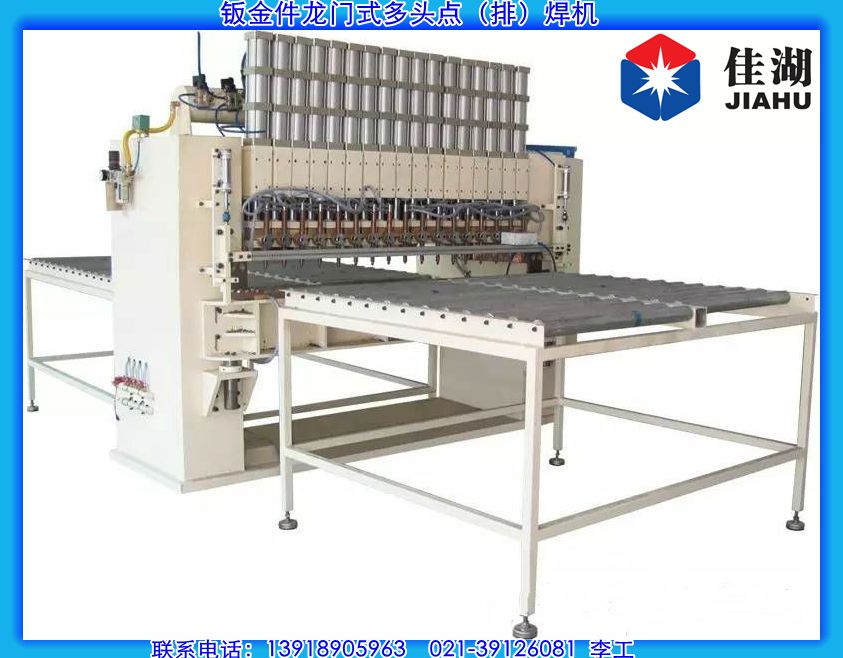 鈑金龍門式多點焊接專科機由龍門式機架、焊接變壓器、氣動傳動裝置,電氣控制系統、冷卻系統及PLC 觸摸屏組成。