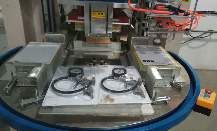 3.用于吸塑包裝封口的高周波機器,使用時可根據吸塑包裝的產品尺寸大小,來決定一次同時包裝一個或多個產品。工作臺自動旋轉,3-6工位可選。
