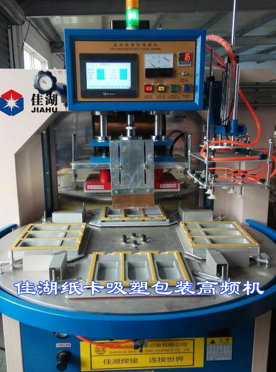 上海佳湖生產的高頻機,高周波有多種款式:自動轉盤式高頻機、高周波塑料熔接機可左邊帶機械放紙卡,右邊帶機械手自動取料速度快產量高,節省人工成本,常用于雙面吸塑泡殼封口包裝,吸塑吊卡封口包裝,雙面紙卡夾吸塑罩熱合封口包裝,也稱為泡殼包裝,高頻熱合包裝,吸塑包裝。所以高周波吸塑包裝機,也是包裝機械,印刷包裝機械內常用的一種包裝設備。因為包裝封口后里面的產口透明易見,故而利用高周波包裝深受廠商及消費者的喜愛。機器也可用于一些塑料熔接、PVC熔接、塑膠熔接、真皮壓印等用途。