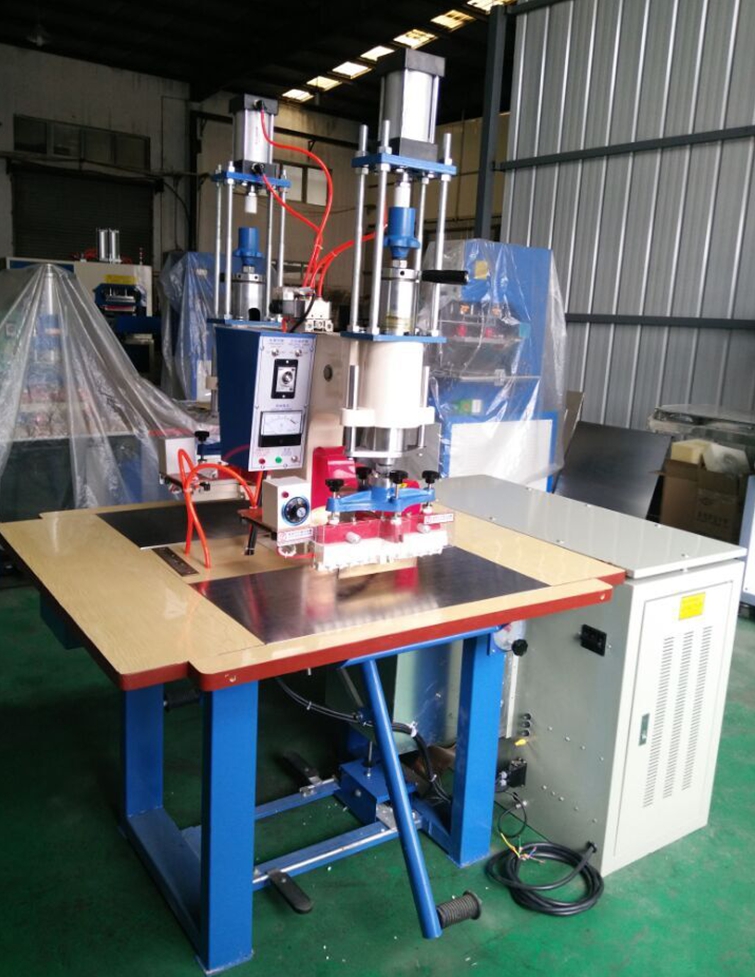 雙頭高頻熱合機,適用于難對位產品熔接,也可根據壓力需要選擇氣動裝置。