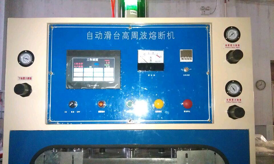 2、高周波同步熔斷機又稱高周波同時熔斷機、熔斷機、高周波同步裁斷機、高周波裁斷機。高周波熔斷機需塔配專用的高周波熔斷模具。